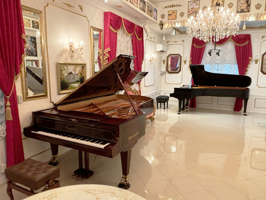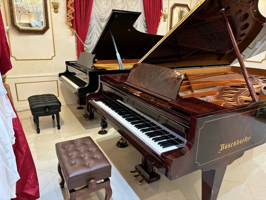 スタインウェイとベーゼンドルファーを並列に配置。または向かい合わせの配置。※向かい合わせの場合、手前ピアノの大屋根は外せません。開閉は可能です。