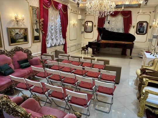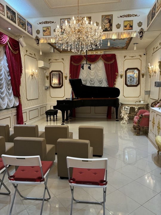 演奏者がサロンへ入場してピアノへ行くまでの通路の確保が必要です。