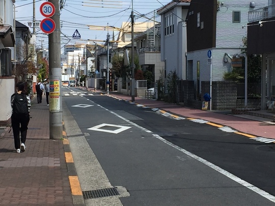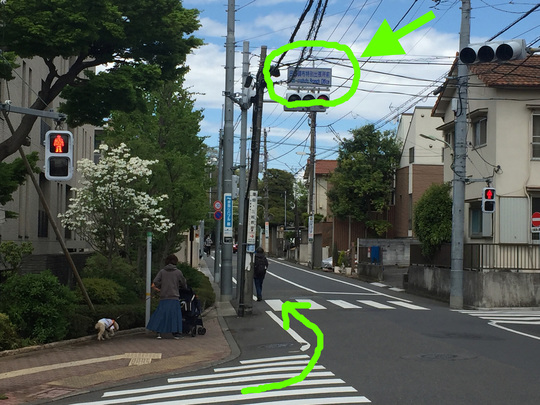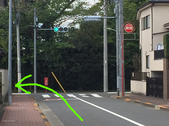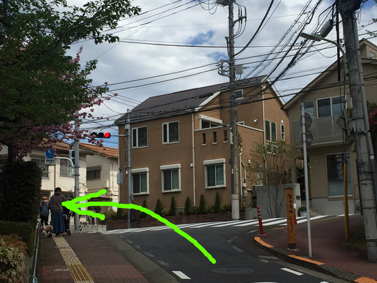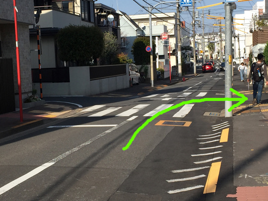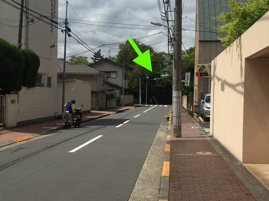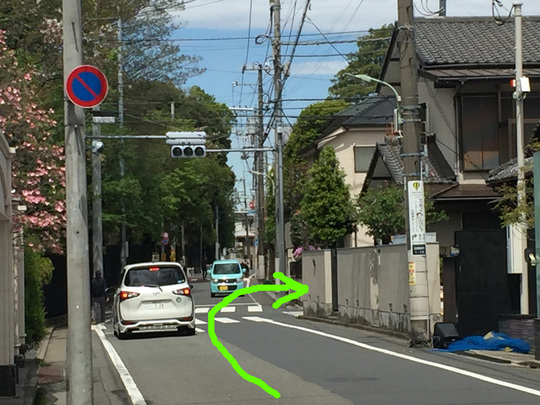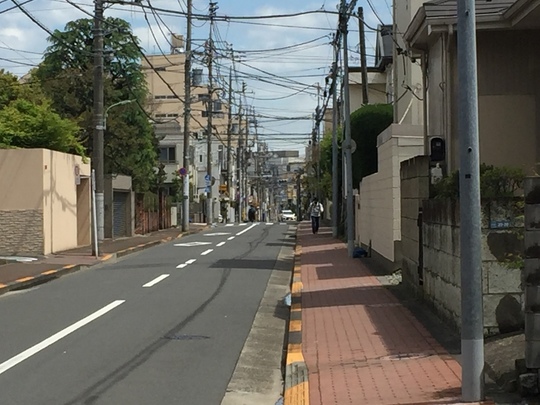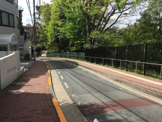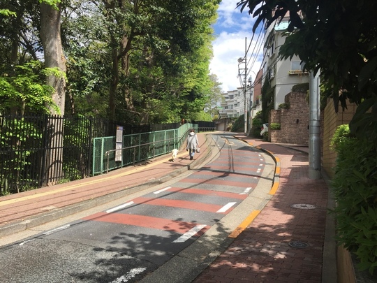 すぐ次の「田園調布特別出張所」信号機を右折して下り坂を下って歩きます。