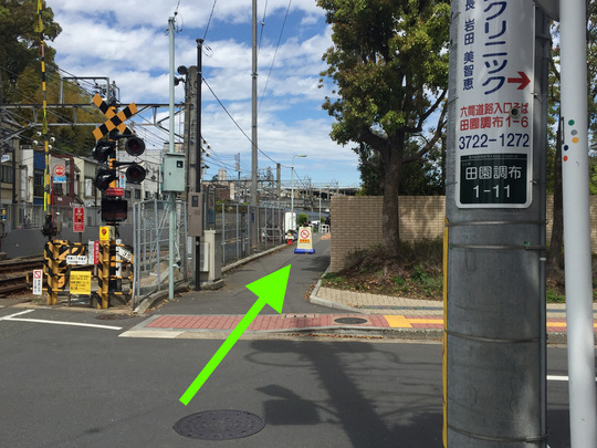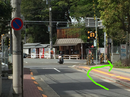 そのまま歩くと踏切が見えますのでそこを左折します。