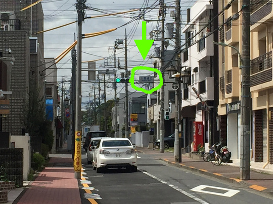 静かな雰囲気に変わり、突き当りに信号機が見えて来ます。