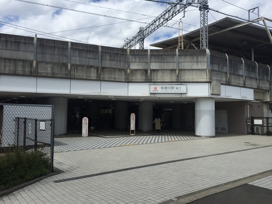 この歩道を歩きますと、左手の多摩川駅に到着いたします。