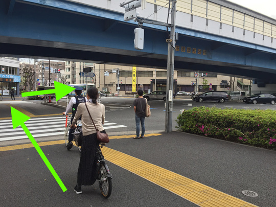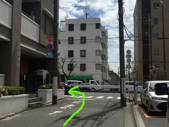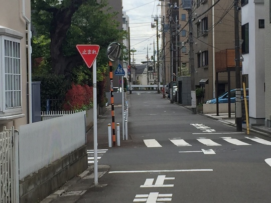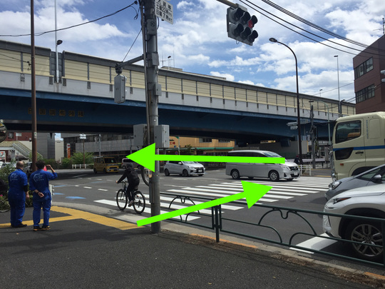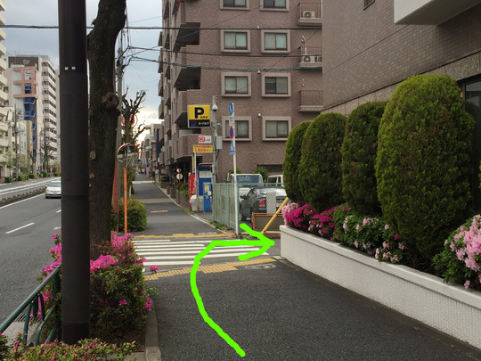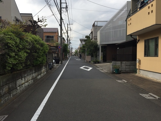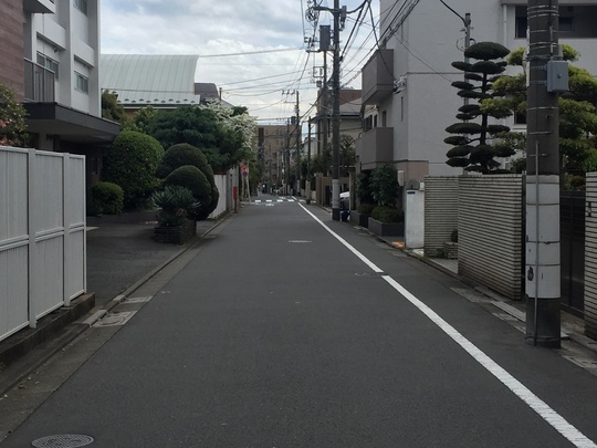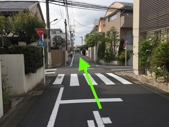 陸橋の「田園調布警察署」の信号を渡り、右手に見える警察署の方へ渡って左折します。