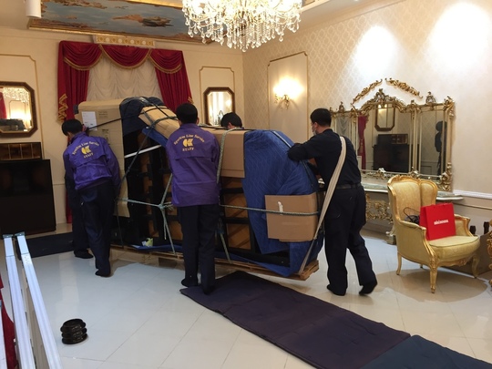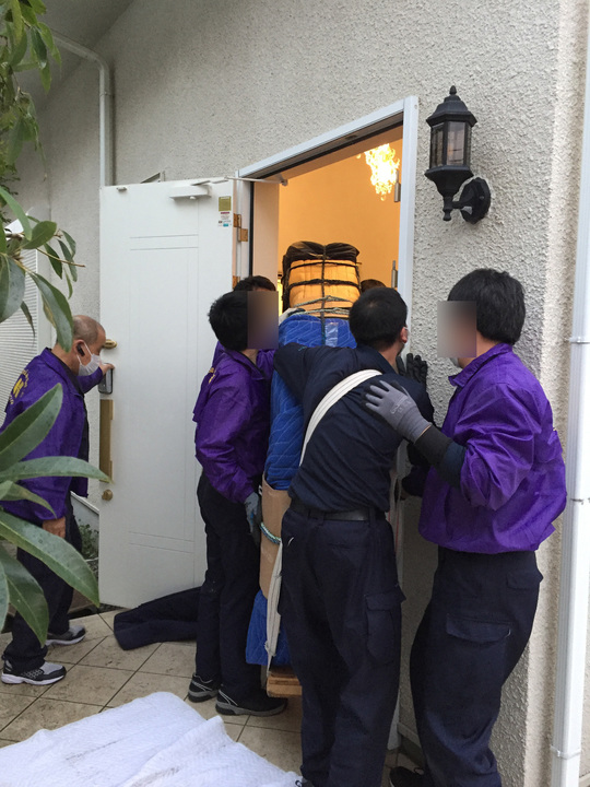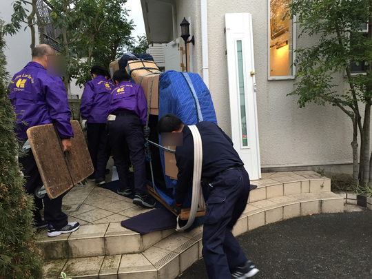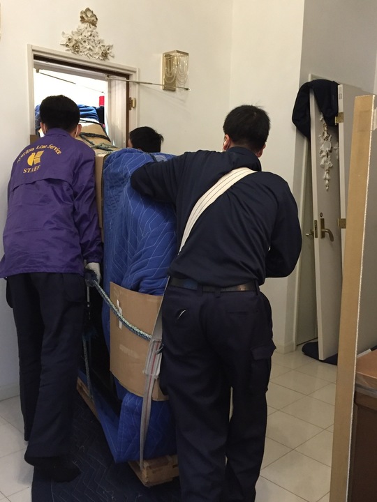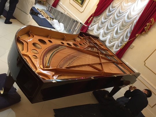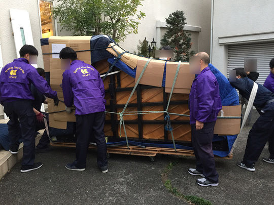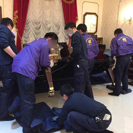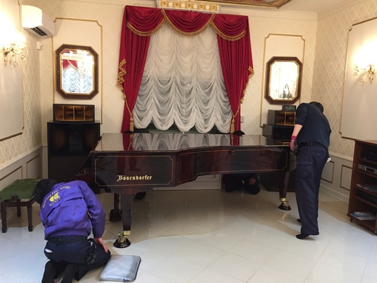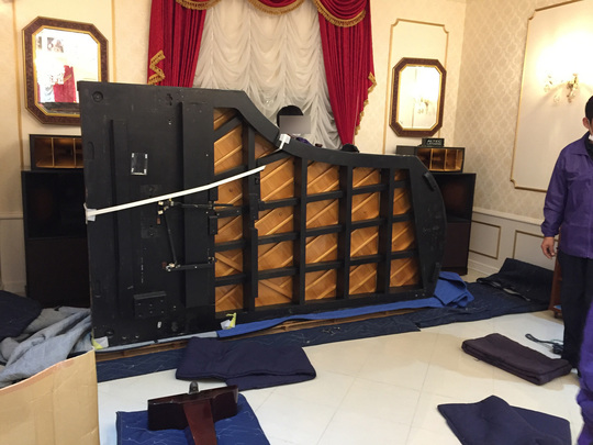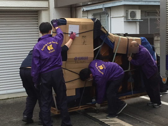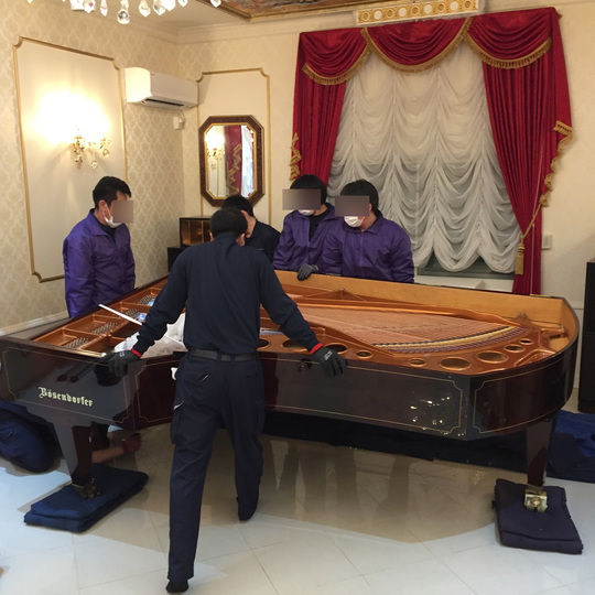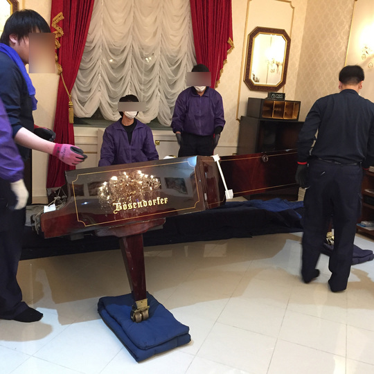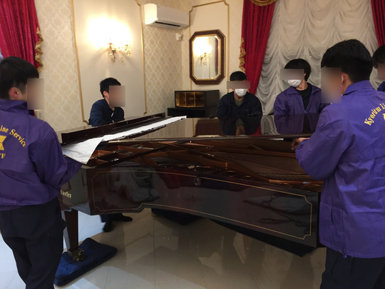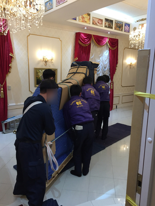 ⑥サロン入口もやっとやっと※何しろ普通のピアノより横幅が長いので大変です