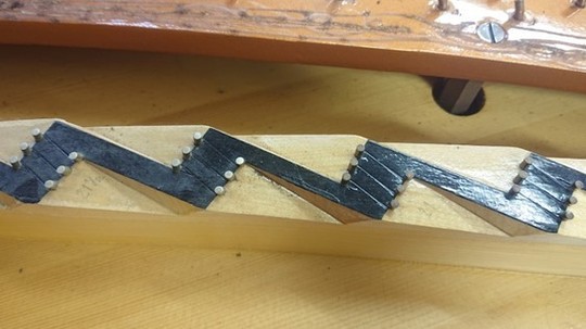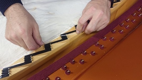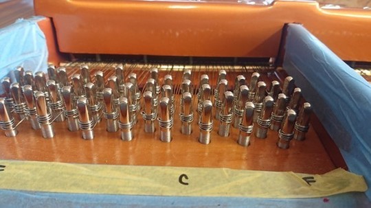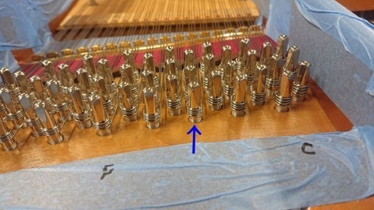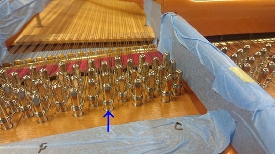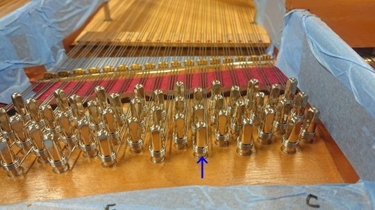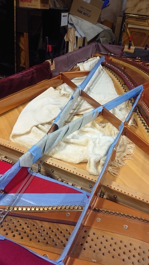 これで中音のアグラフ交換も完了! フォアストリング側の弦枕フェルトも接着。