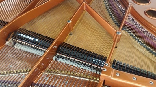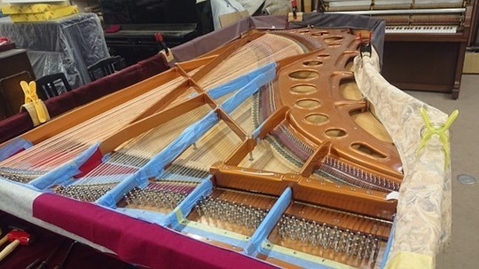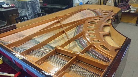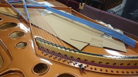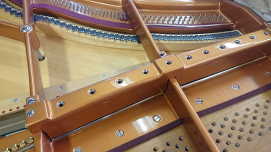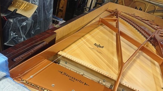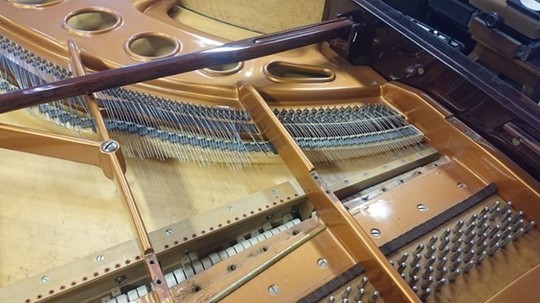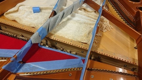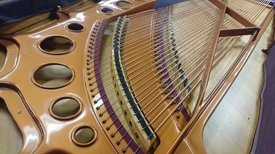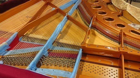 ピアノ・サロン「オ・ル・ゴール」へ「ベーゼンドルファー・インペリアル 290 セナトール」を設置するに当たって行われたもので、主に「弦の張り替え」とそれに伴う付帯的な作業です。