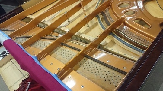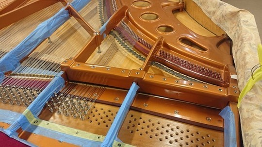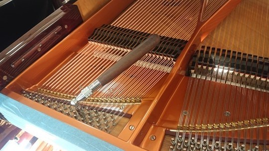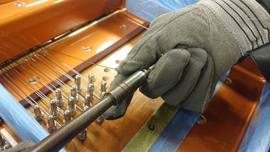 まずは全体の張力を少しずつ慎重に上げていき…ベーゼンドルファーは特に張力が強いため、一気に全体を上げてしまうとフレームにかなりの負担がかかりますので注意が必要です。