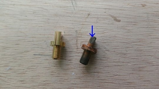 まず、駒ピンの磨きから。 左半分が磨き終わった方です。